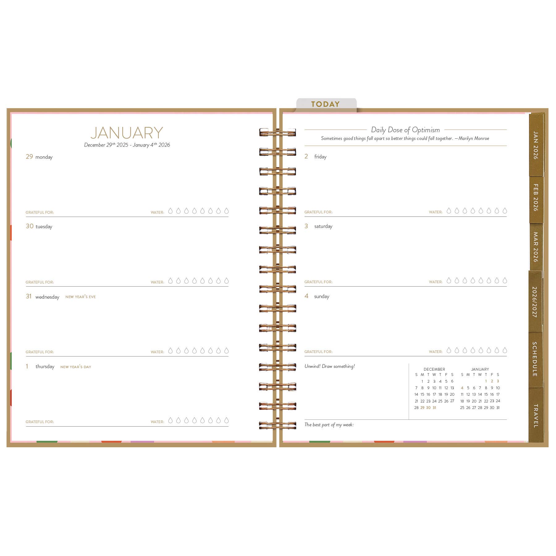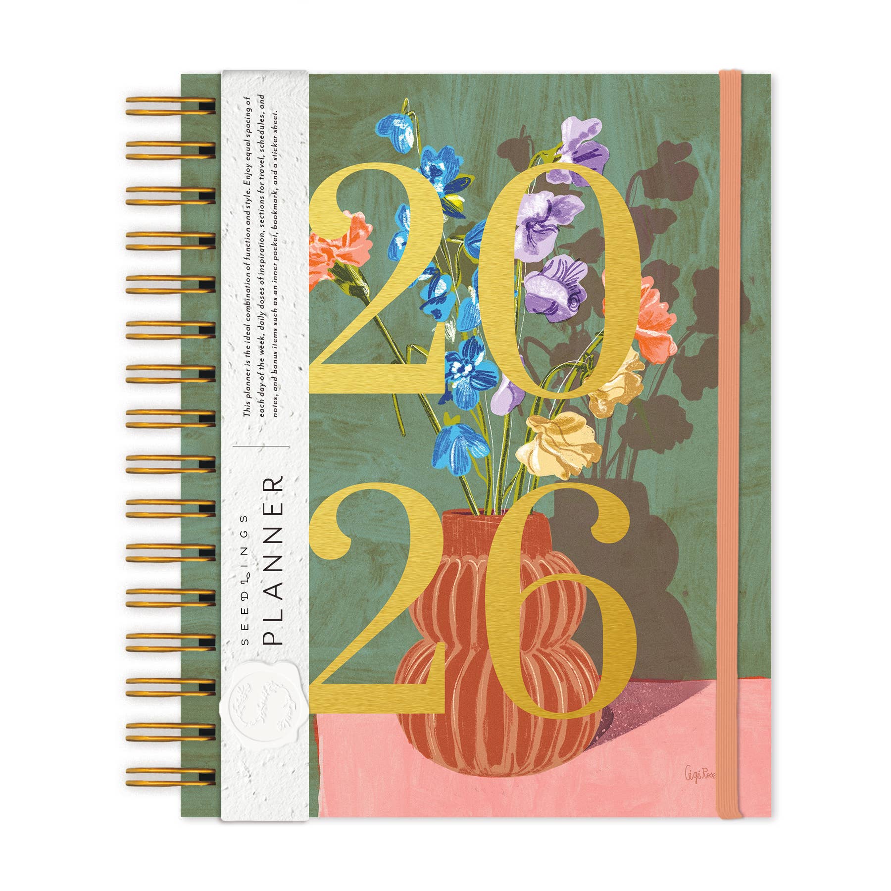 Seedlings 12 Month Planner (Jan 2026 - Dec 2026) is the perfect planner. Made with premium paper and metallic accents, the 2026 planner includes monthly and weekly views, a movable plastic bookmark with ruler and an organizational inside pocket. The hard cover is foil stamped and has a layflat binding with an elastic closure. Special sections include, Year at a glance, Holidays, Celebrations, Schedules, Travel and Notes, even a daily dose of optimism. A sticker sheet to personalize your planner is also included. Foil details and Seed Paper Packaging make this Planner extra special. Each package is PLANTABLE paper, biodegradable, and embedded with seeds. When the seed paper is planted in soil, the seeds grow and the paper composts away. All that is left behind are flowers!