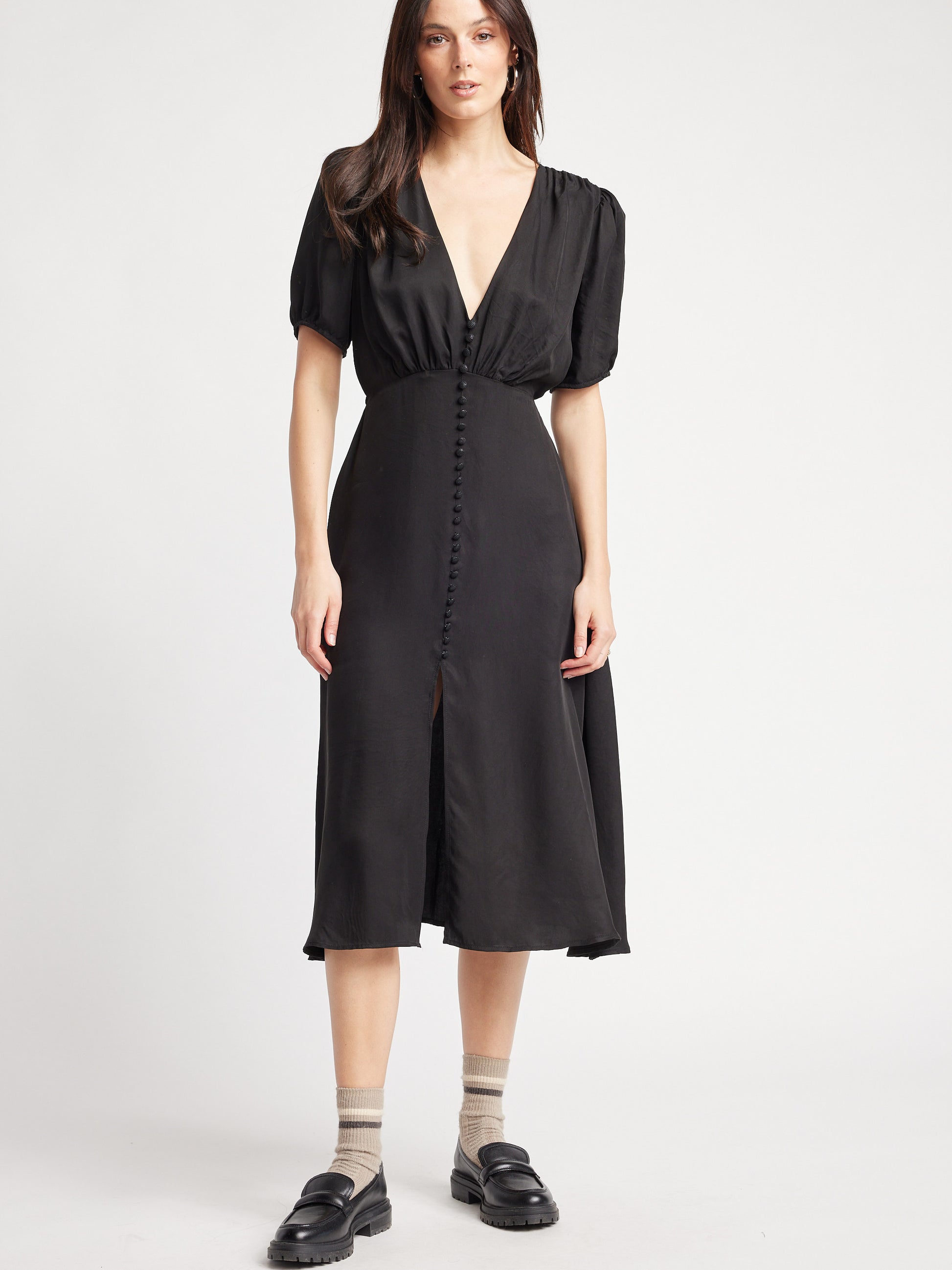 Elevate your wardrobe with the Amiah V-Neck Dress, designed to enhance your silhouette with its chic V-neckline and effortlessly timeless style.