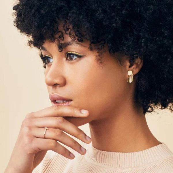 Babette is made in subtly shiny hammered gold/brass. The perfect go-everywhere earring is delicate but packs a punch. On a post back.