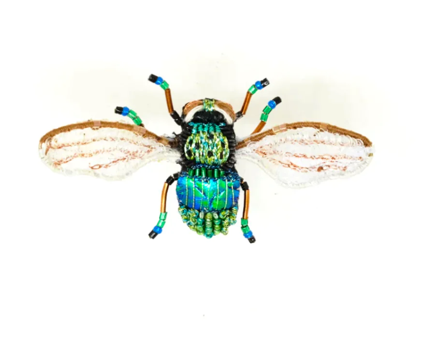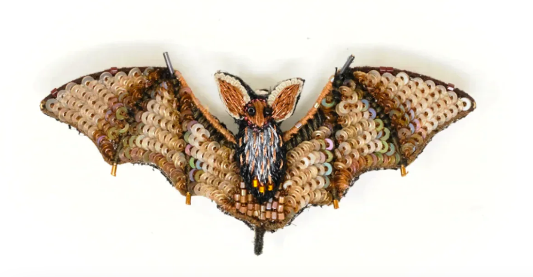 Cotton, Felt, Metal, Sequins & Beads; Hand embroidered