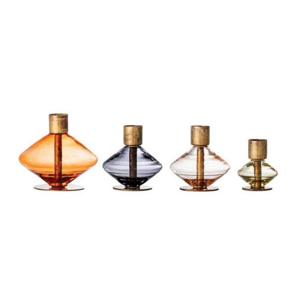 Brass and blown glass taper candle holders are a beautiful statement piece for your home.