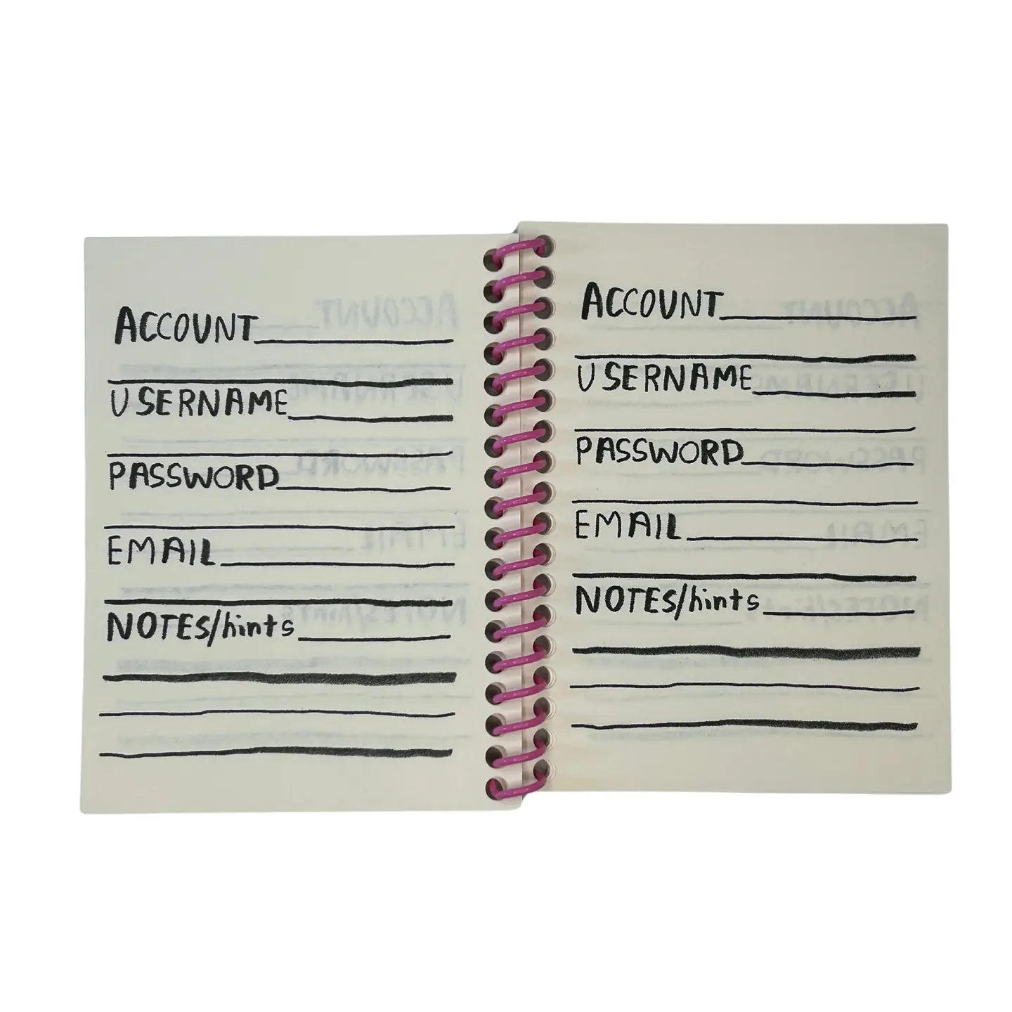 A handy journal for all the boring stuff you need to remember, but just can't. Give your brain a rest and write it down here! Passwords, codes, pins, and more, all find a home. Tuck this spiral journal away somewhere safe and breathe a sigh of relief. Way to take a load off.