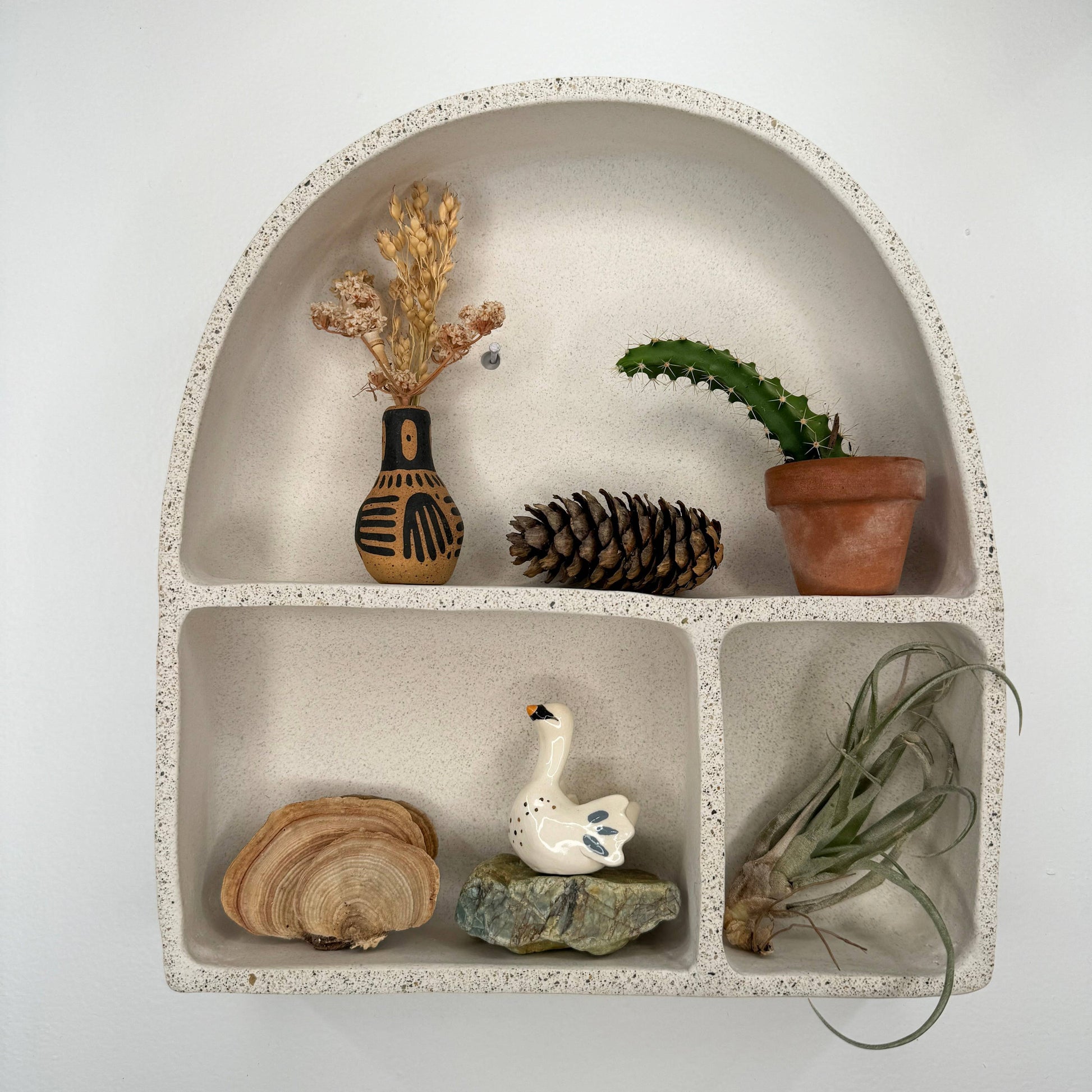 The Altar of Inspiration was designed to encourage a connection with nature and the exploration of the outdoors. It makes the perfect home for tiny treasures. This is a gypsum cement reproduction of my original hand sculpted ceramic altars. The mold and cast were both handcrafted in California.