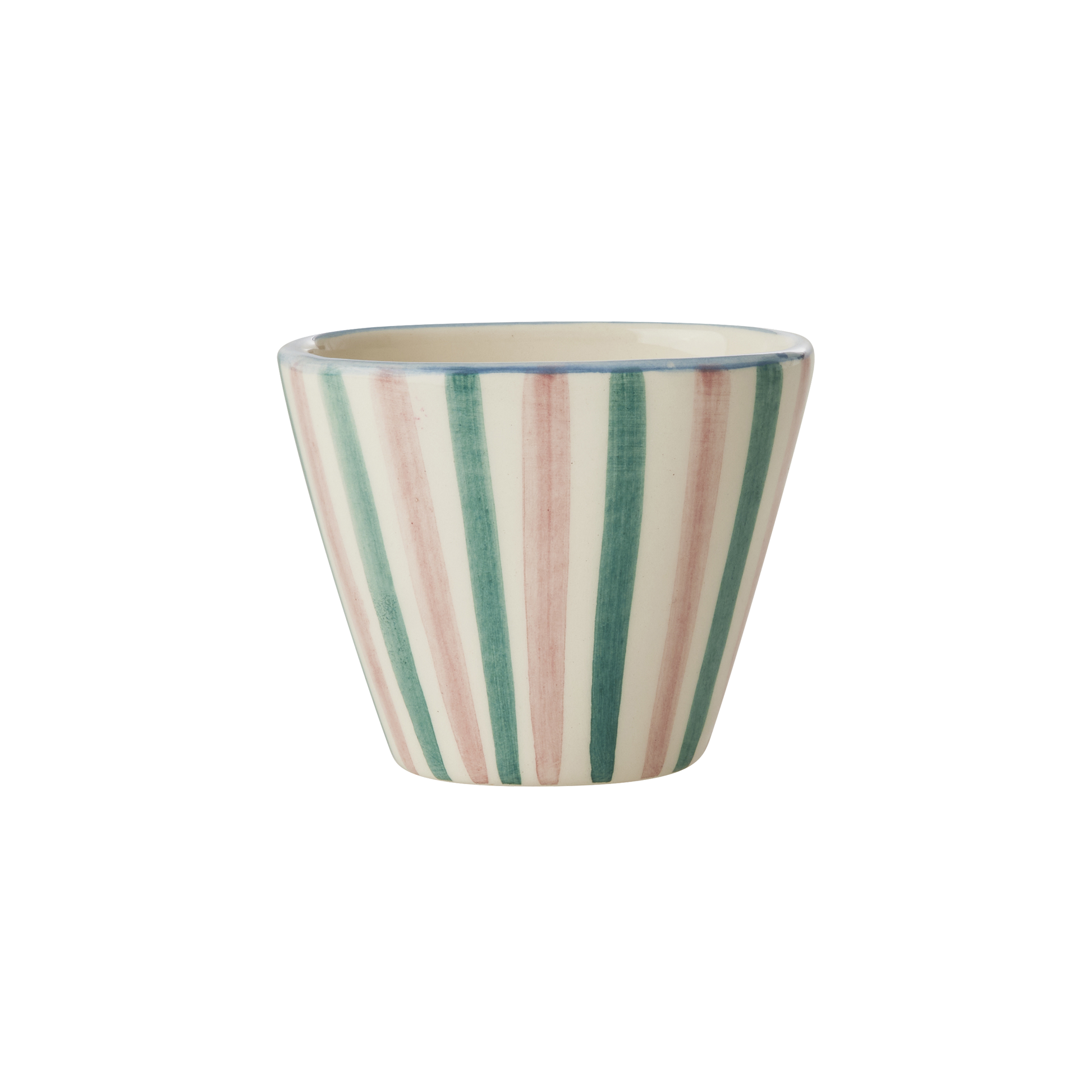 Ceramic Oval Espresso Cup with Hand Painted Stripes