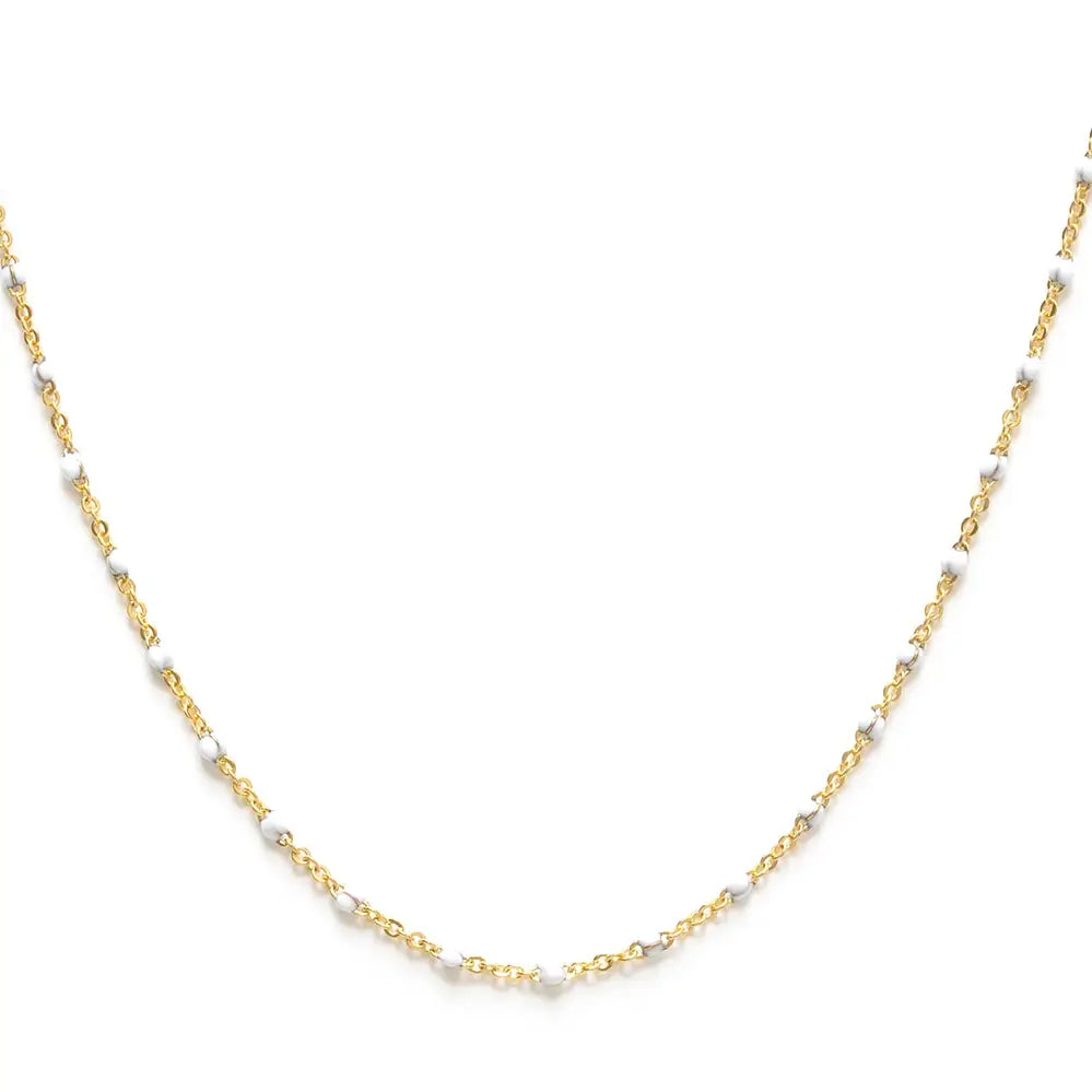 This enameled station chain is perfect for layering or is enough all on its own. 18" chain 14k gold plate over brass. Chain is made in South Korea, necklace assembled in Sonoma California.