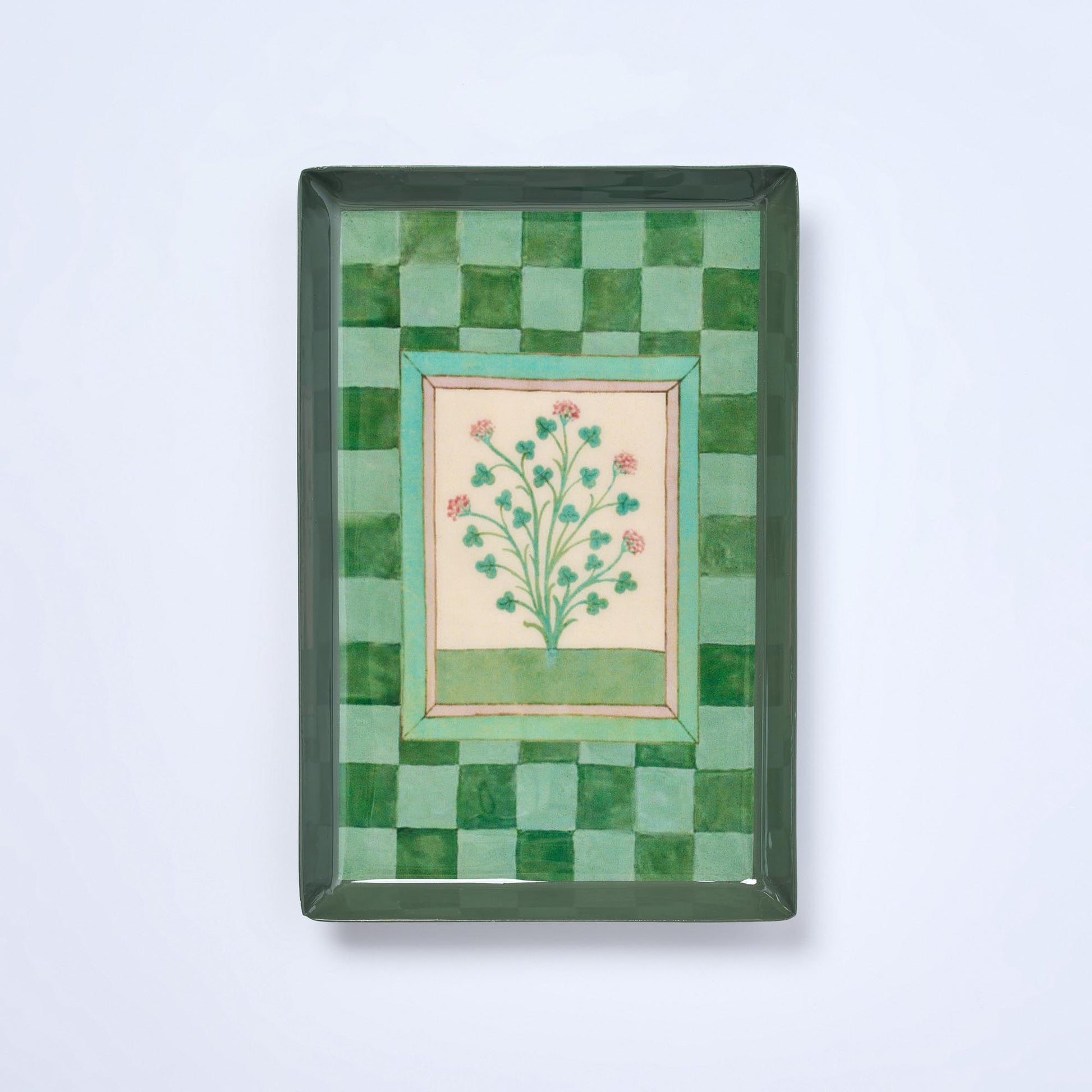 Herbs: This decorative tray features an enchanting herb illustration, handpicked from a German Book of Herbs first published in 1462, which has been paired with a contemporary green check pattern, painted in delicate watercolour. H 6.7" x W 4.5" D 0.4"