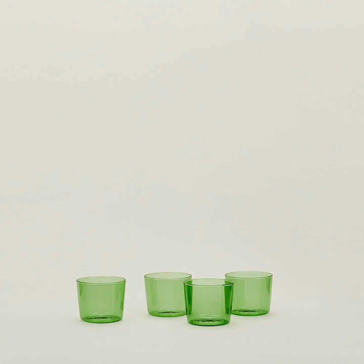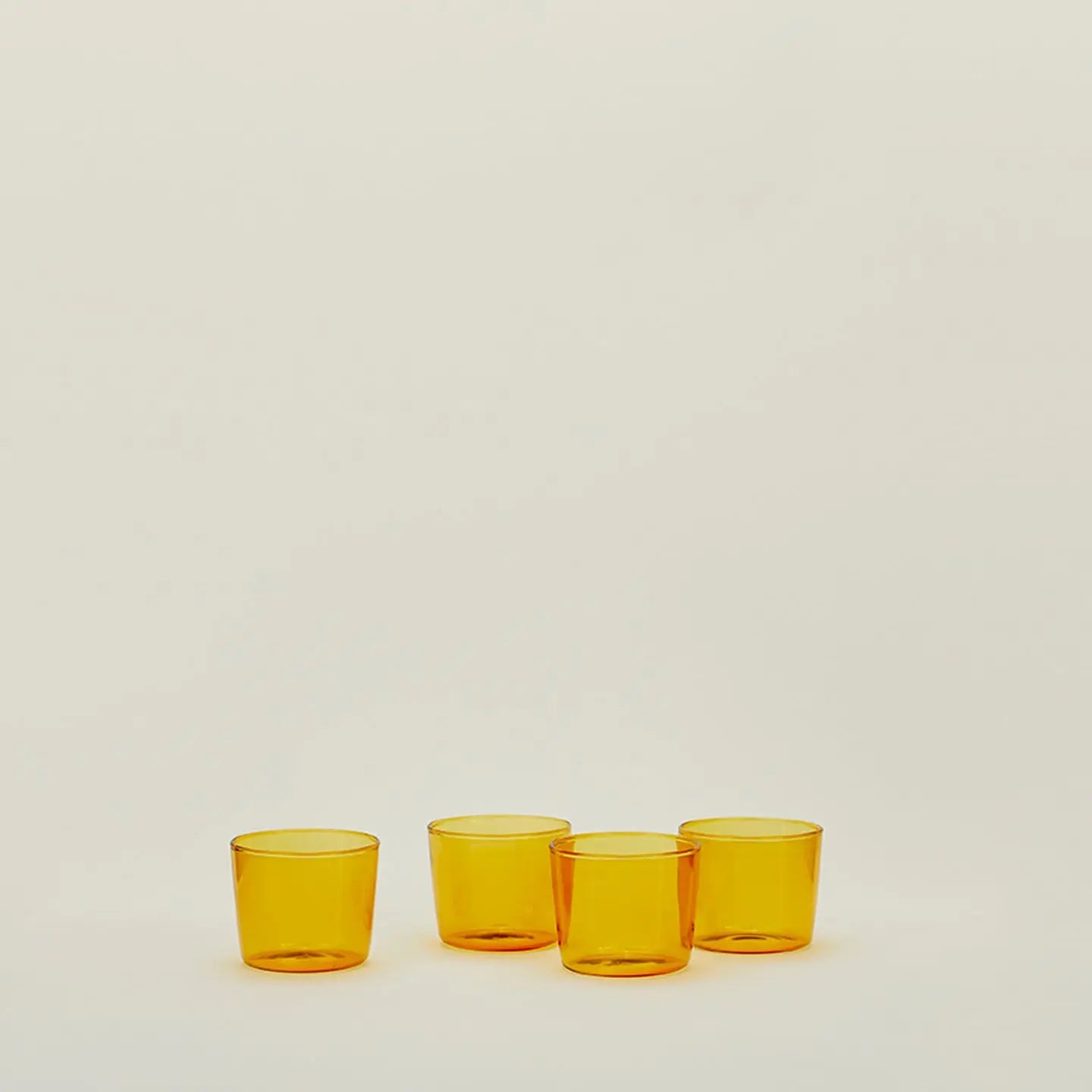 Set of 4 Holds 6 oz of your morning OJ, dinner water, or evening vino. Plus they're stackable, so you can clear some shelf space. Colorful and hinting at retro, but with super modern lines.