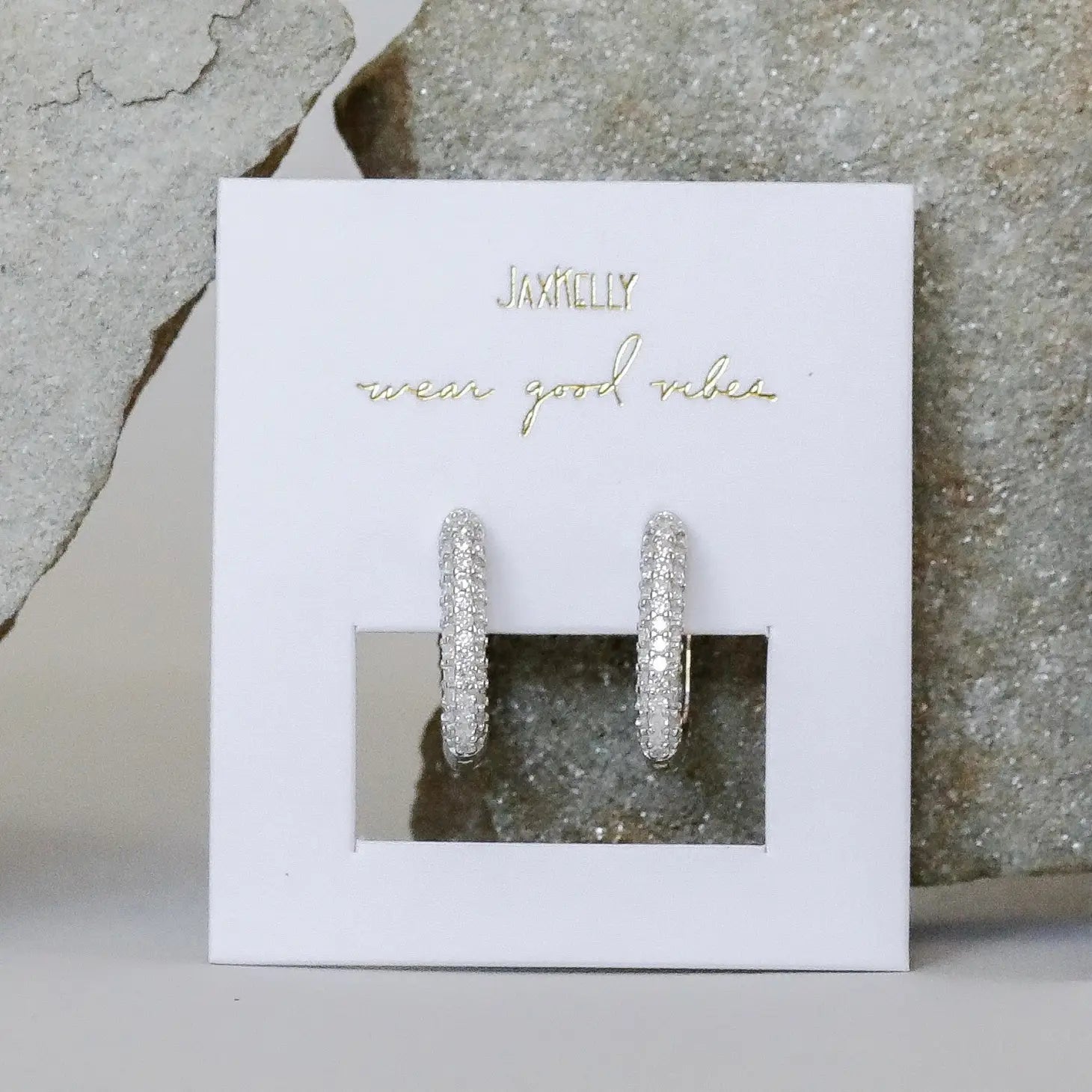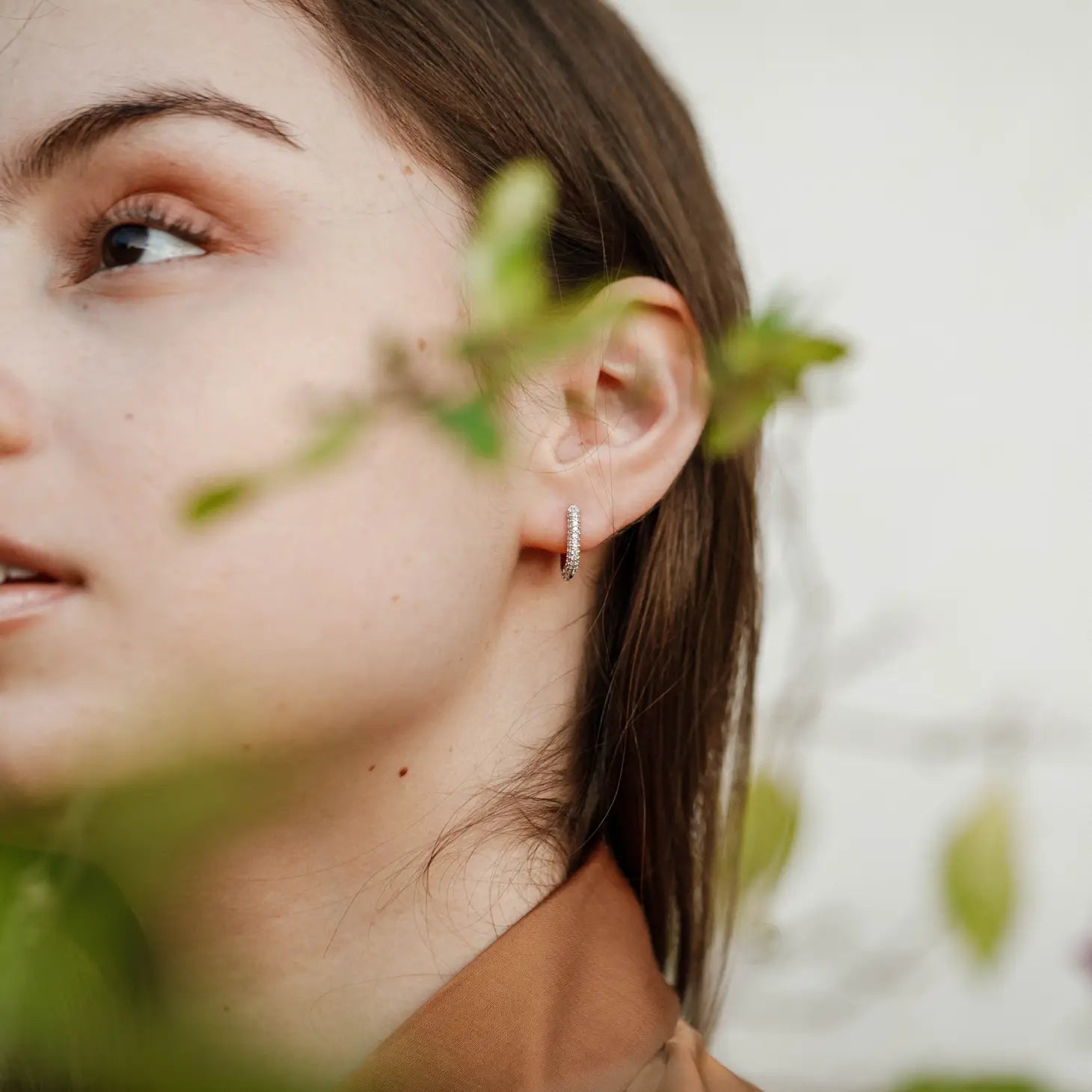 A modern square-cut hoop lined with rows of Pavé Set Cubic Zirconia creates a touch of everyday elegance, crafted in a lightweight shape to be easily wearable all day and all night. Choose between 18K Gold Vermeil or Sterling Silver.