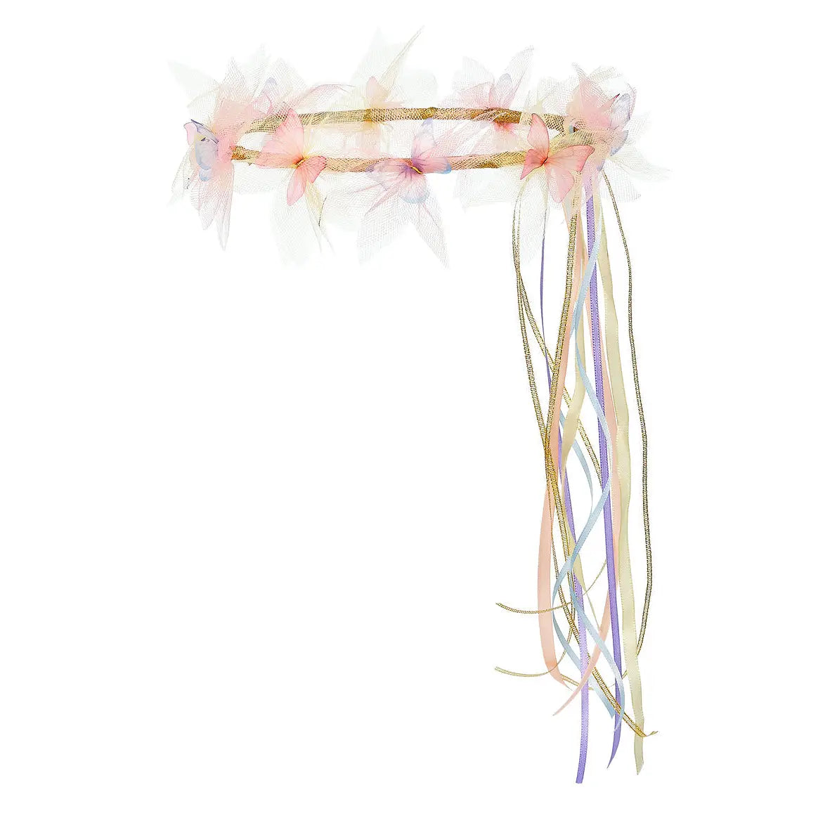 The Joanna Halo is a magical and sparkly accessory that’s perfect for any fairy, princess, or butterfly in training! This beautiful headband features a circle of glittery butterflies that look like they’re flying right above your head, just like a real fairy halo. It’s super comfy to wear, with a soft, flexible band that stays in place without pinching or sliding.