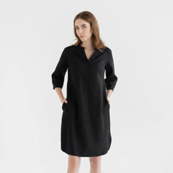Featuring a simple cut, comfortable side pockets, and classic button details, the Prelude dress is the perfect go-to piece for any casual occasion. Whether you're strolling the streets or enjoying an outing in nature, its timeless design ensures both comfort and style. You can even pair it with pants for a more relaxed look.