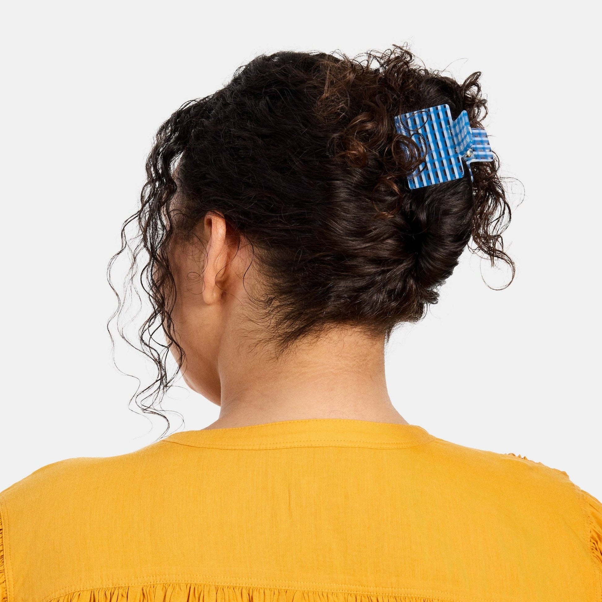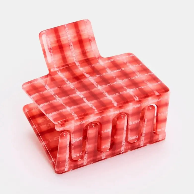 A rectangular box-shaped claw. Small-ish in size, big in grip. Clean lines but colorful. Recommended for all hair types and textures. Made from high-quality acetate; a durable, plant-based bio-plastic.