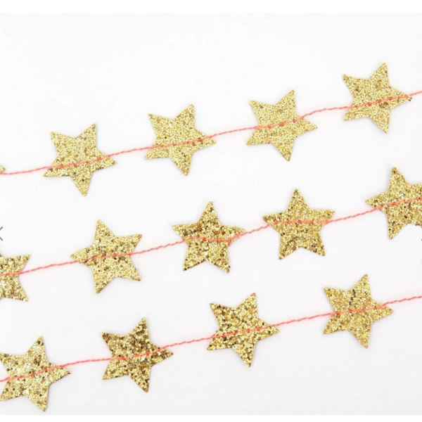 Let the spirit of Christmas shine bright with this sparkly star garland. Made with chunky gold glitter stars, in alternating sizes, it's the perfect way to add festive magic to your window, porch, doorway or mantel. Reusable, simply pack it away after the celebrations are over, and bring it out year after year for an instant show-stopping look.