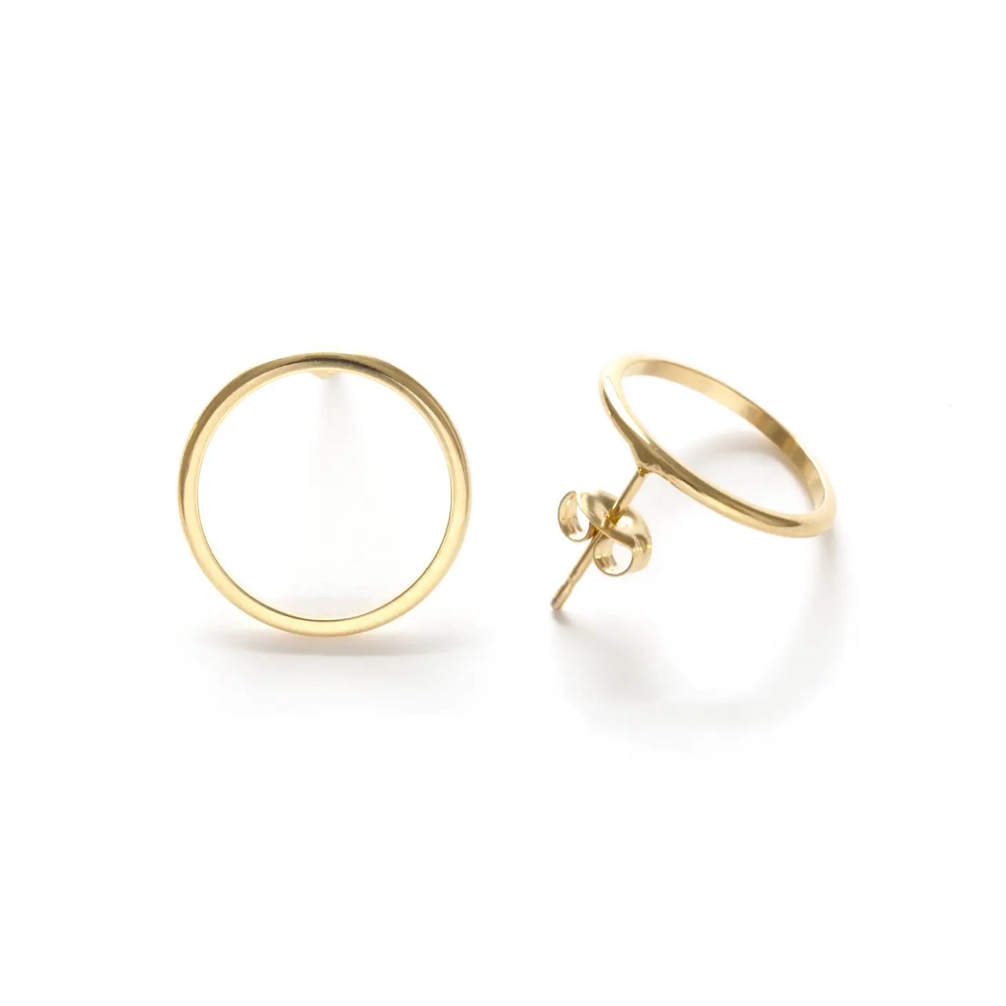 These simple, modern ring stud earrings sure are a crowd pleaser! Women of all ages it seems love this look. Made of brass with a heavy (7-10 mil) 24k gold plate, surgical steel posts.