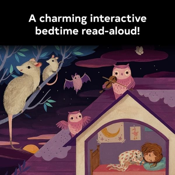 In this sweet and interactive bedtime read-aloud—with the rollicking rhyme of Sandra Boynton's Barnyard Dance! and the bedtime themes of Sleep Like A Tiger by Mary Logue—young readers can make skunks scamper and possums prance with each push of a durable novelty element.