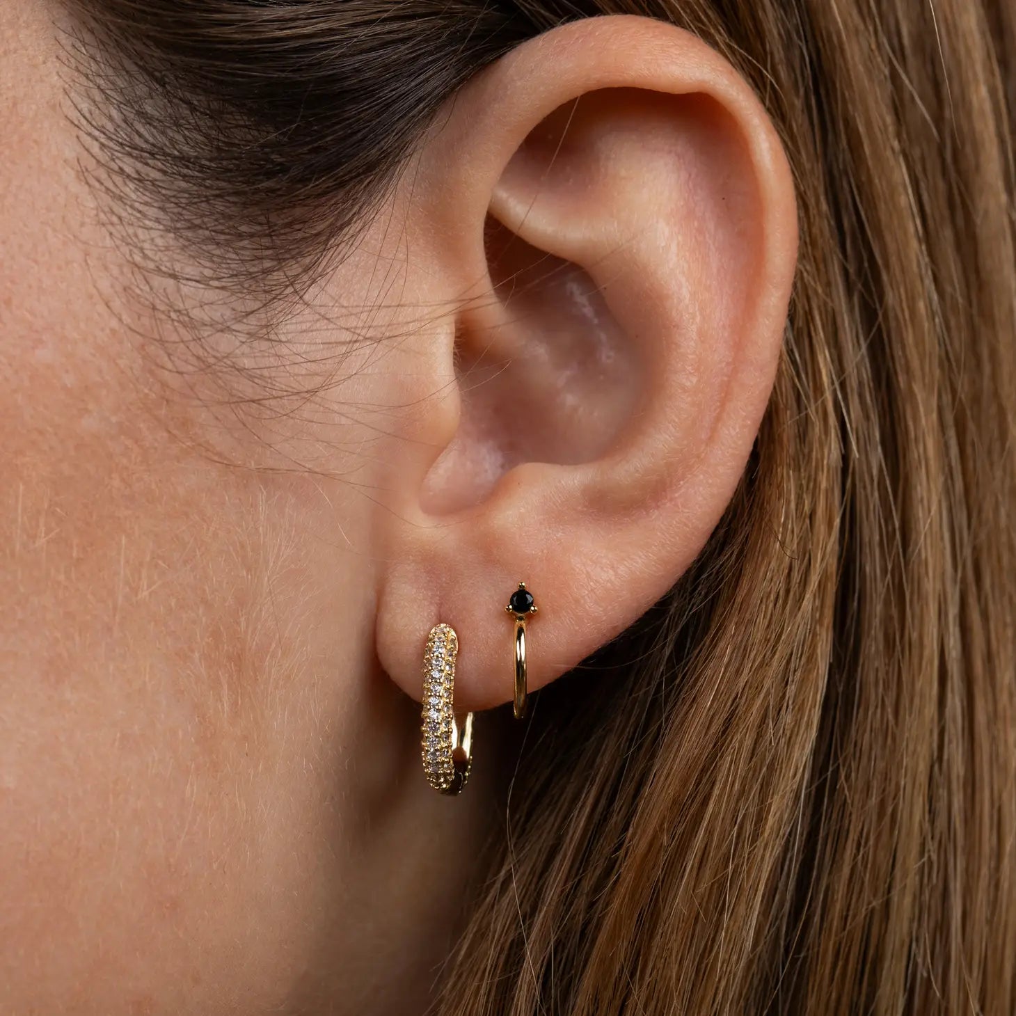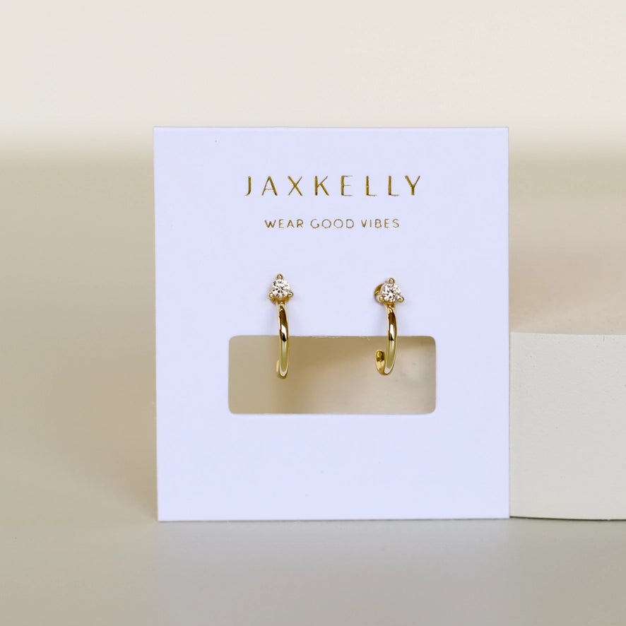 This earring can be worn anywhere on the ear and features a mini cz for a pop of color.