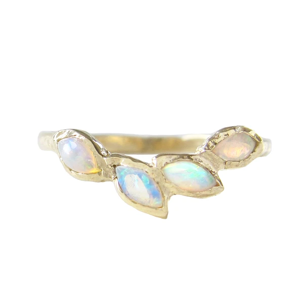 Opals measure approximately 4x2mm. 14k yellow gold. Size 7.