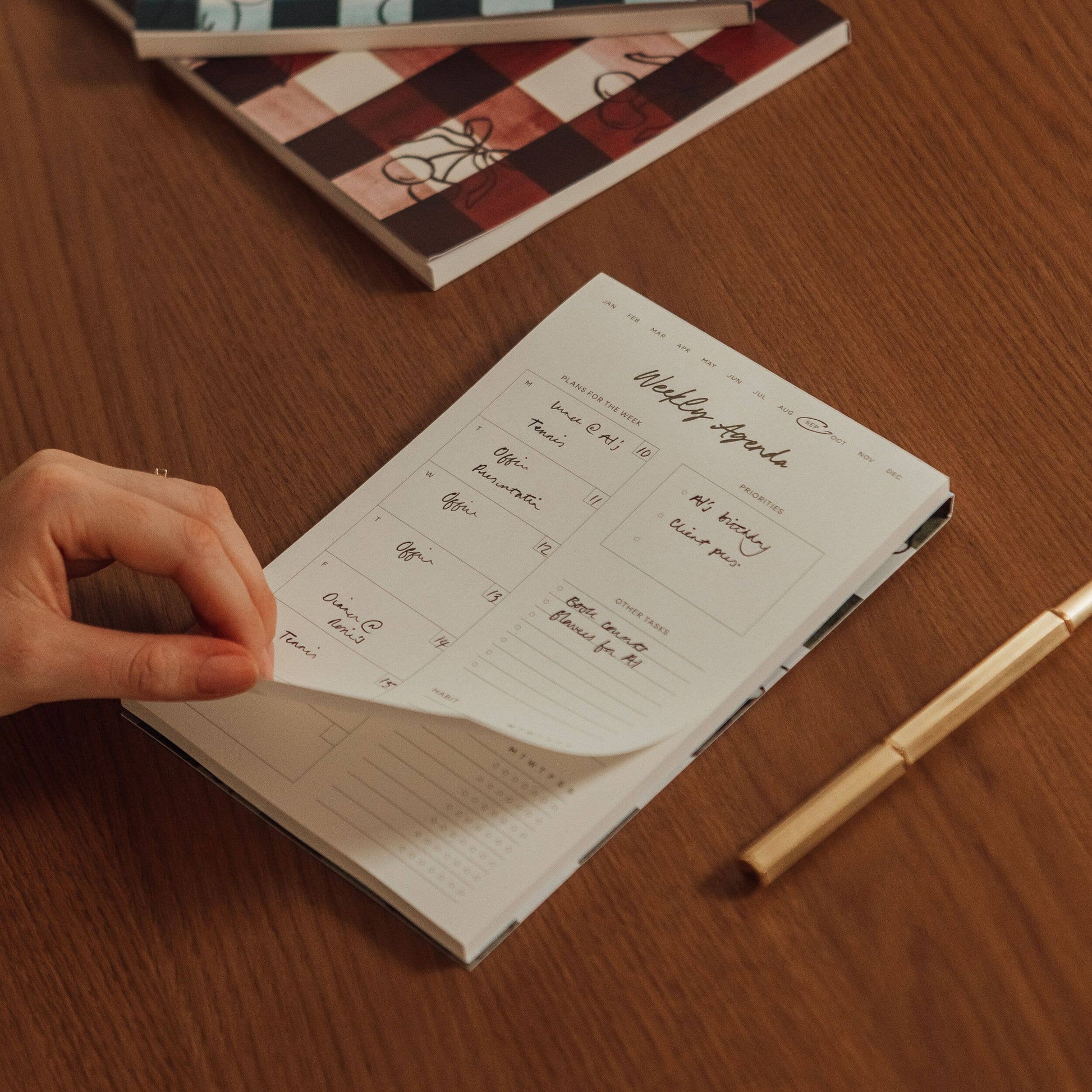 Stay organized with Papier’s Weekly Planning Pad, featuring a stylish gingham cover hand-designed in London. Offering ample space to track appointments, to-dos, and notes, this planner is a practical and elegant tool for staying focused throughout the year. With 60 tearaway pages.