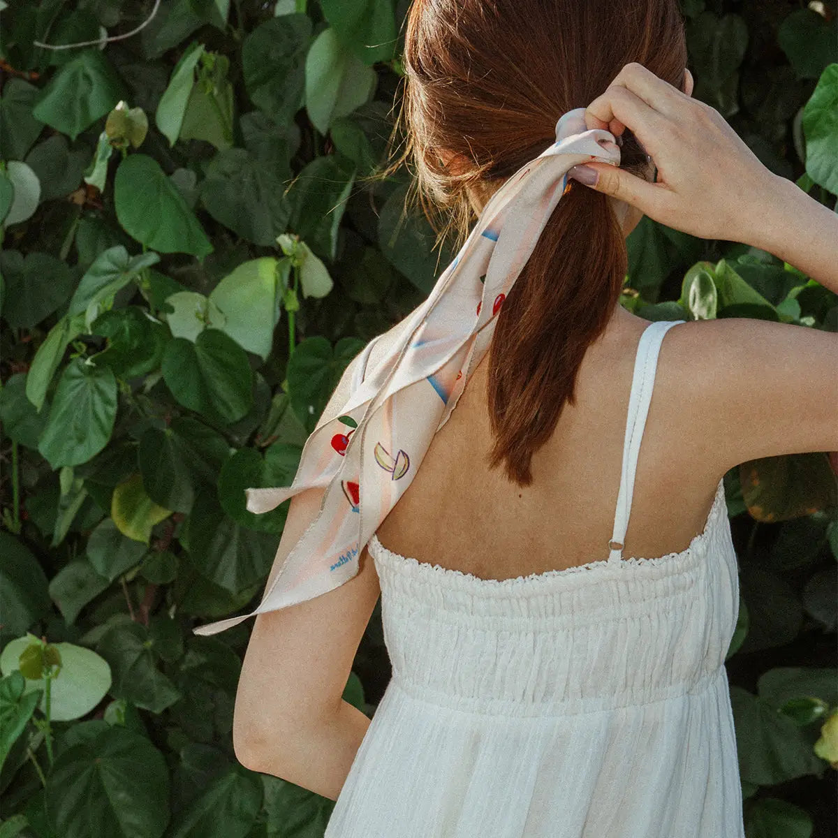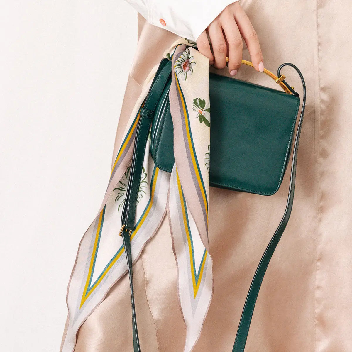 Indulge in the wild floral feel of this silk neckerchief! Versatile and chic, you can style it as a neckerchief to elevate your outfit, tie it around your hair for a trendy and playful look, or use it as a stylish bag accessory to bring a touch of floral flair wherever you go.