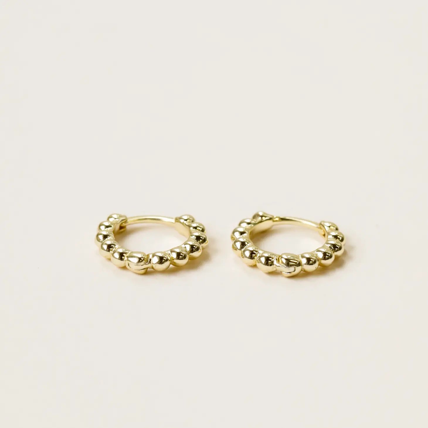 Welcome to the golden collection - take your earring stack to new heights with our largest collection launch ever Your everyday hoop just got an elevated look with petite spheres creating this delicate earring.