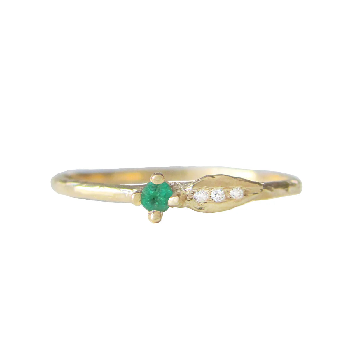 Gemstone measures 2mm. Three white round brilliant accent diamonds 0.015cts.